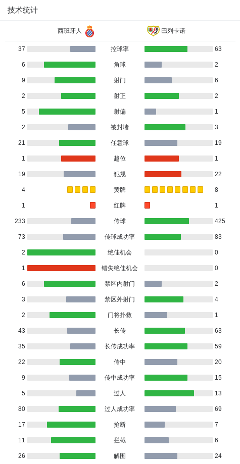 第64分鐘,巴列卡諾球員烏奈-洛佩斯因累計犯規領到第二張黃牌被罰下;相比之下,西班牙人球員在該時段保持了較好的紀律性。